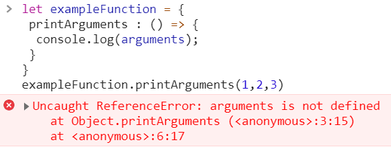 일반 javascript 함수에서 arguments 키워드는 함수가 호출될 때 전달된 인수를 access하는 데 사용합니다.